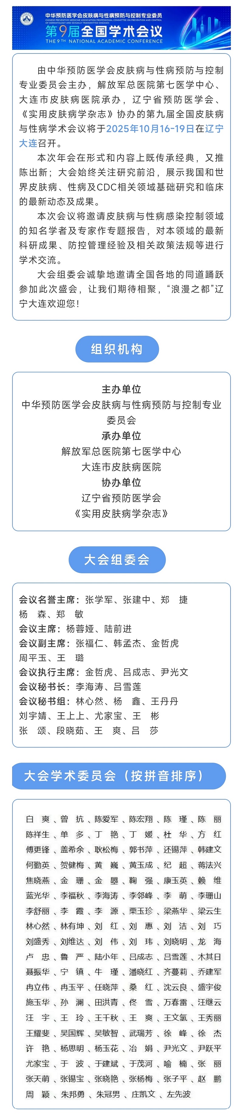 日程预报 | 中华预防医学会皮肤病与性病预防与控制专业委员会第九届学术会议